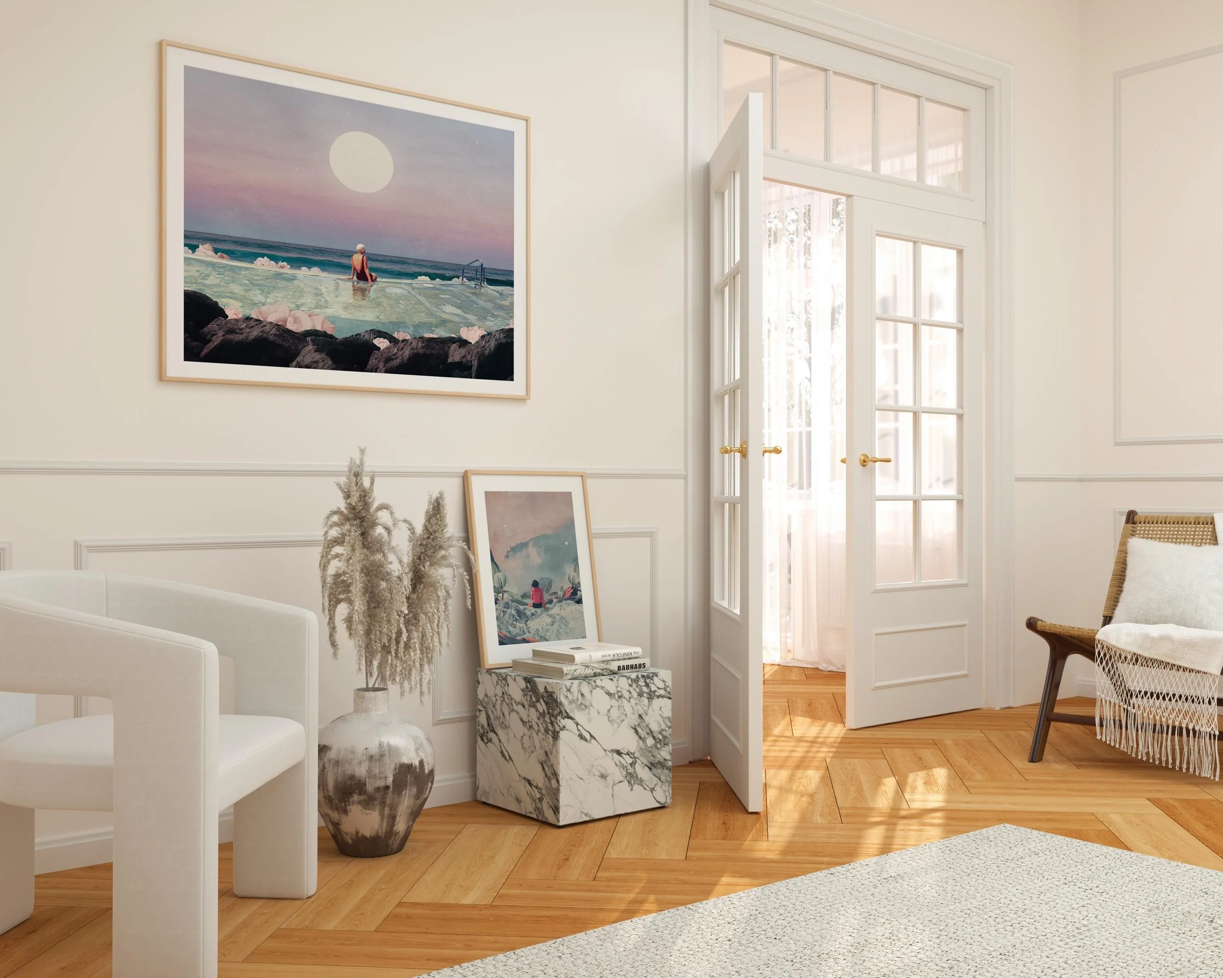 🔹Giclee Print on Photo Rag 308gsm [1-2 inches white border]: A heavy-duty, vegan certified matte paper made of 100% cotton rag with a natural white tone. It has a soft texture with a lightly defined felt structure, perfect for high-quality prints. 1-2inch white border for framing.