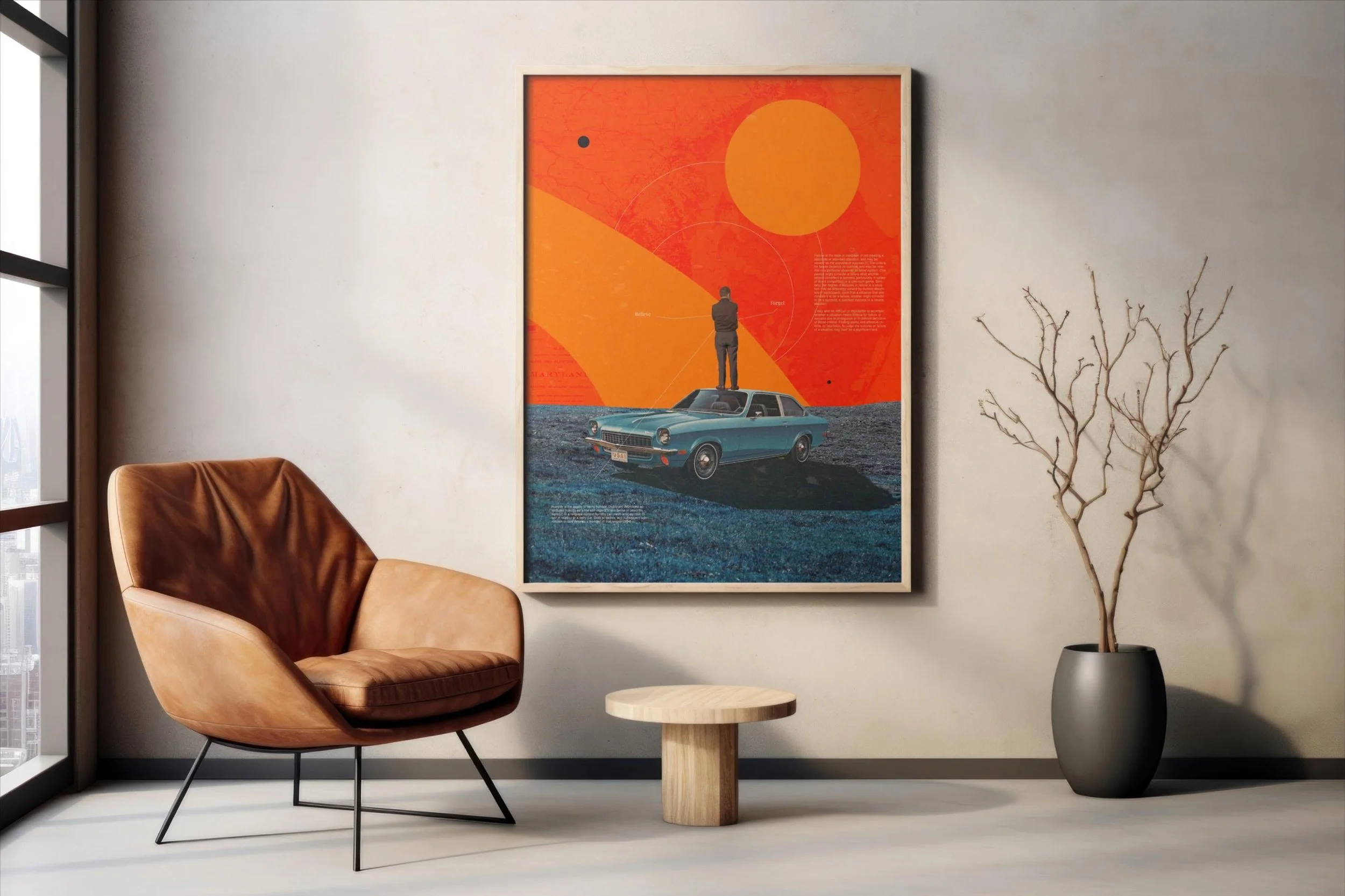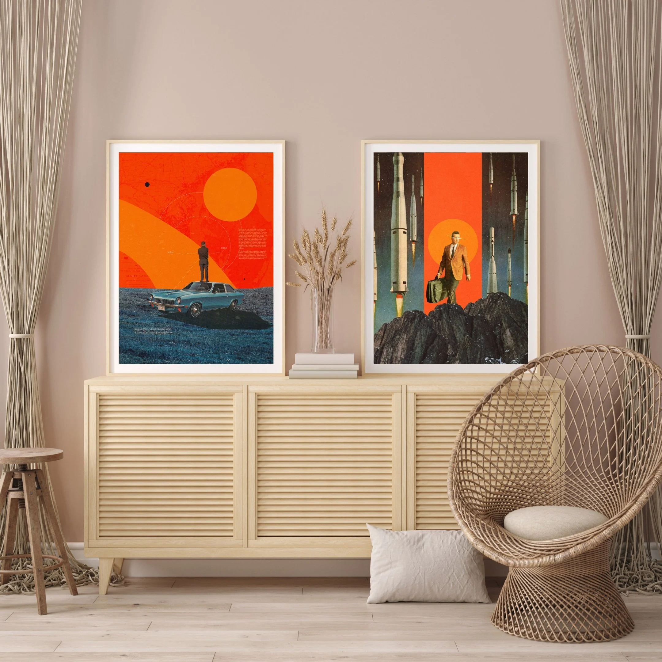 1. Some of the collage artworks are made with old, vintage imagery and they may seem more textured, saturated or blurred. This is all intentional and part of the retro aesthetic we are aiming for.