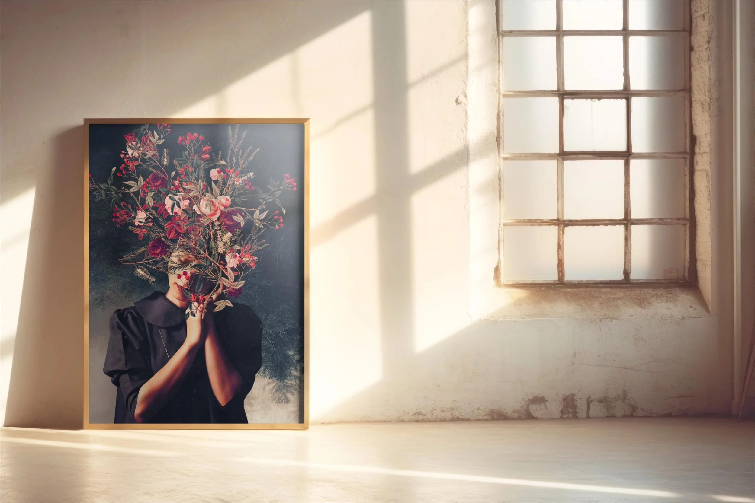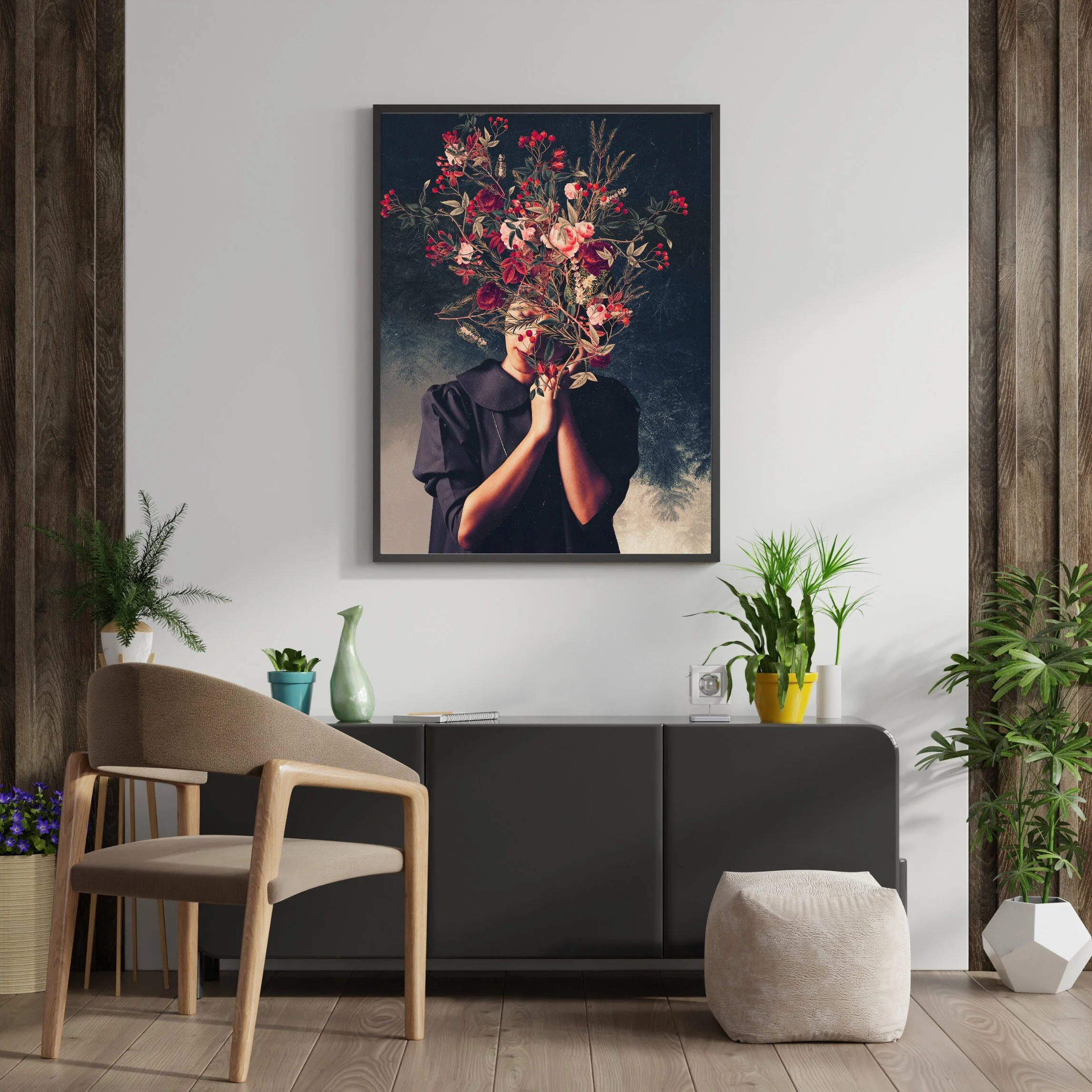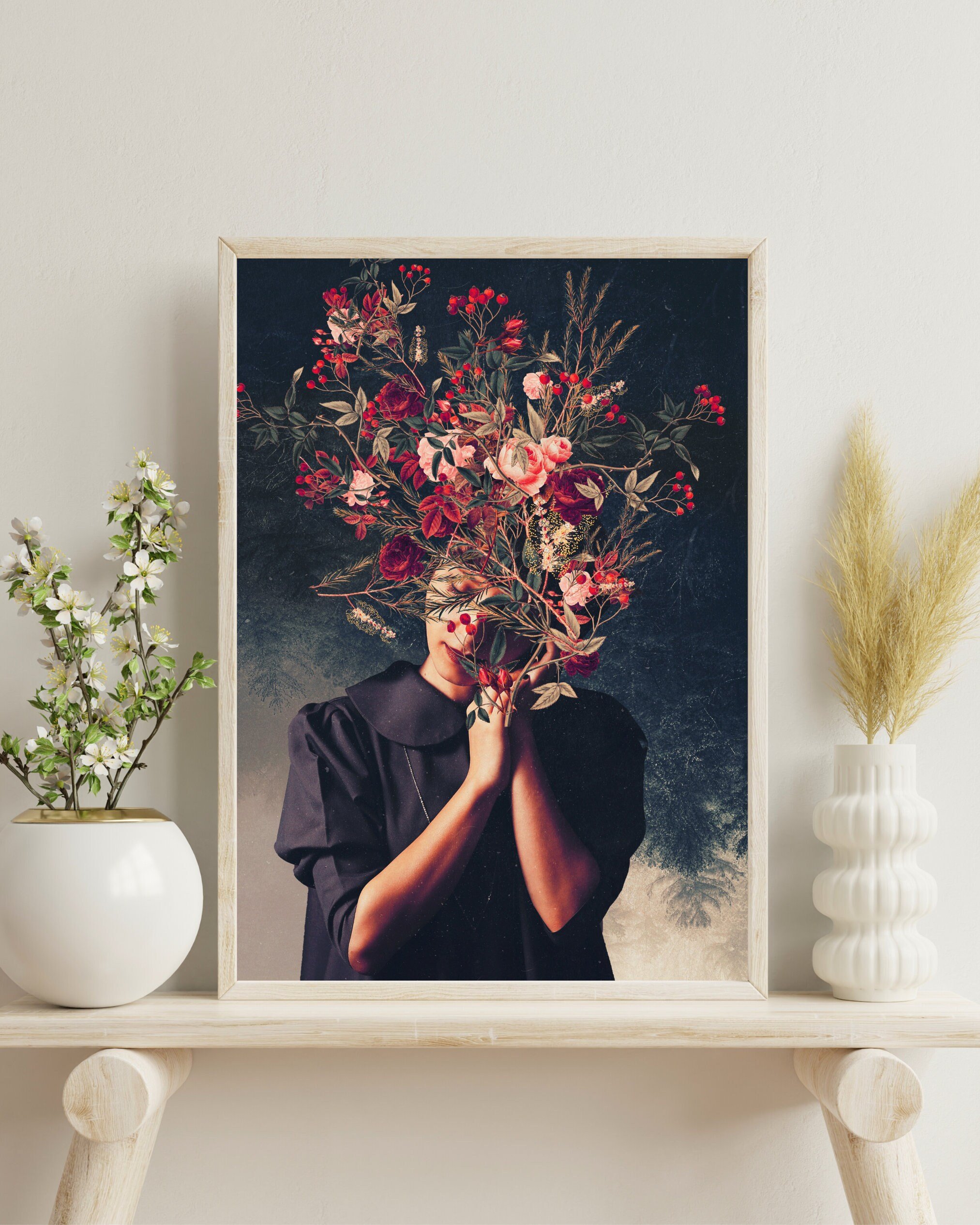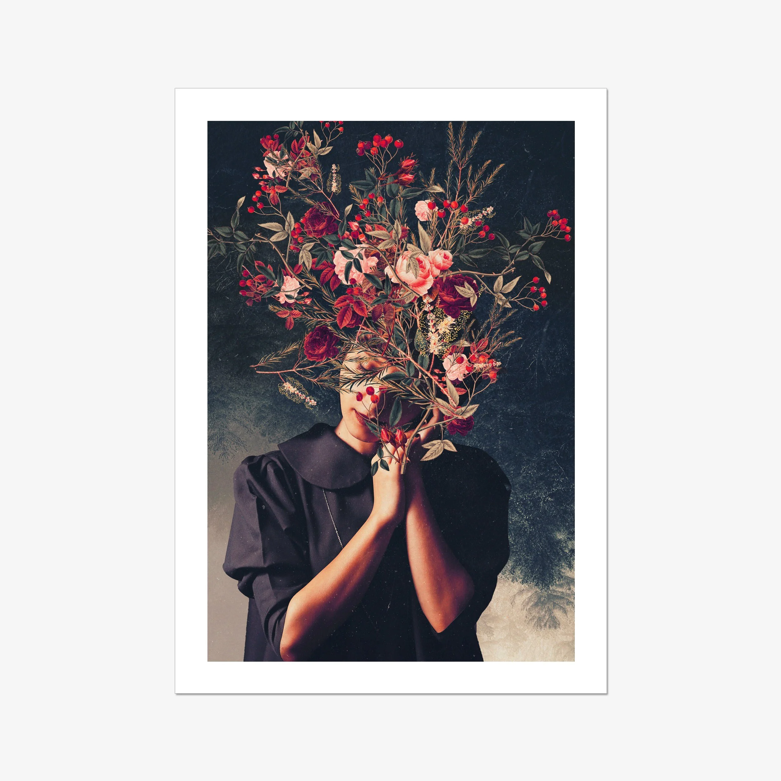 "Kumiko" Floral Surreal Collage Portrait Art Print created by Frank Moth.
