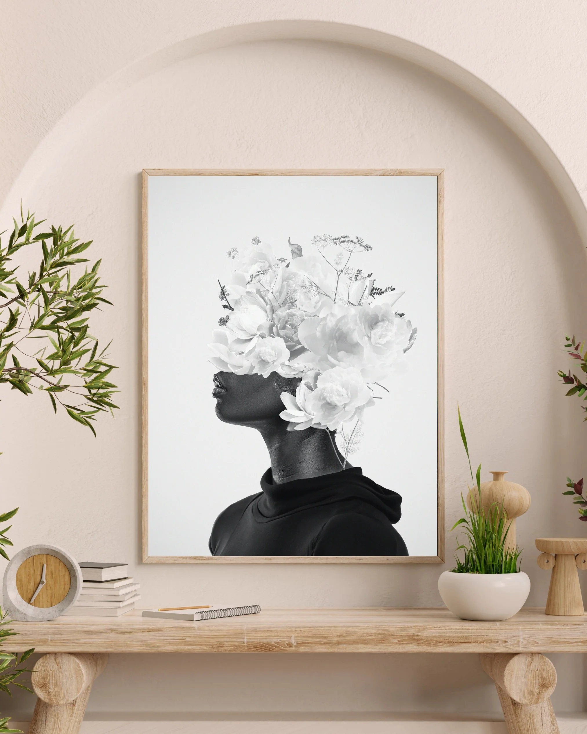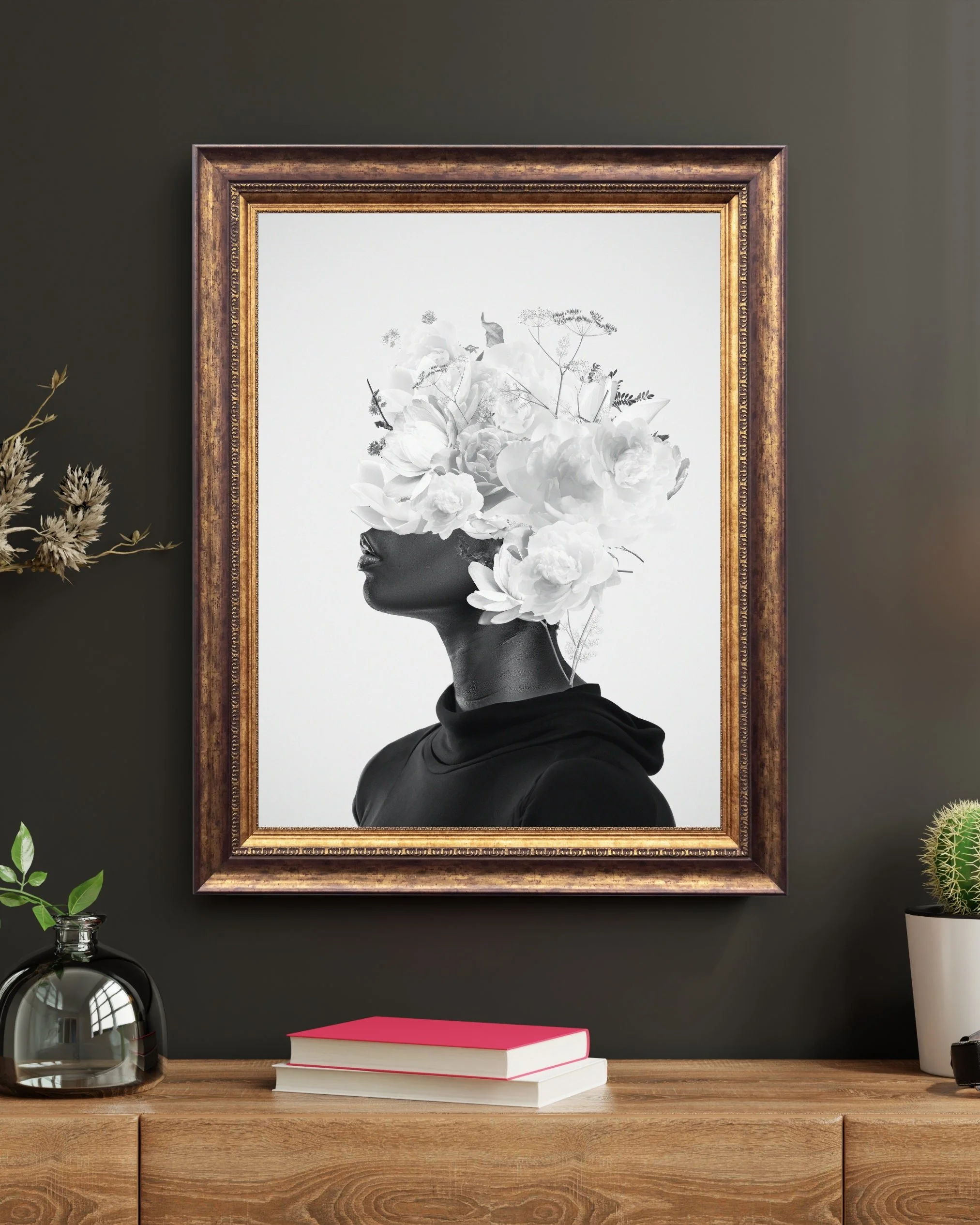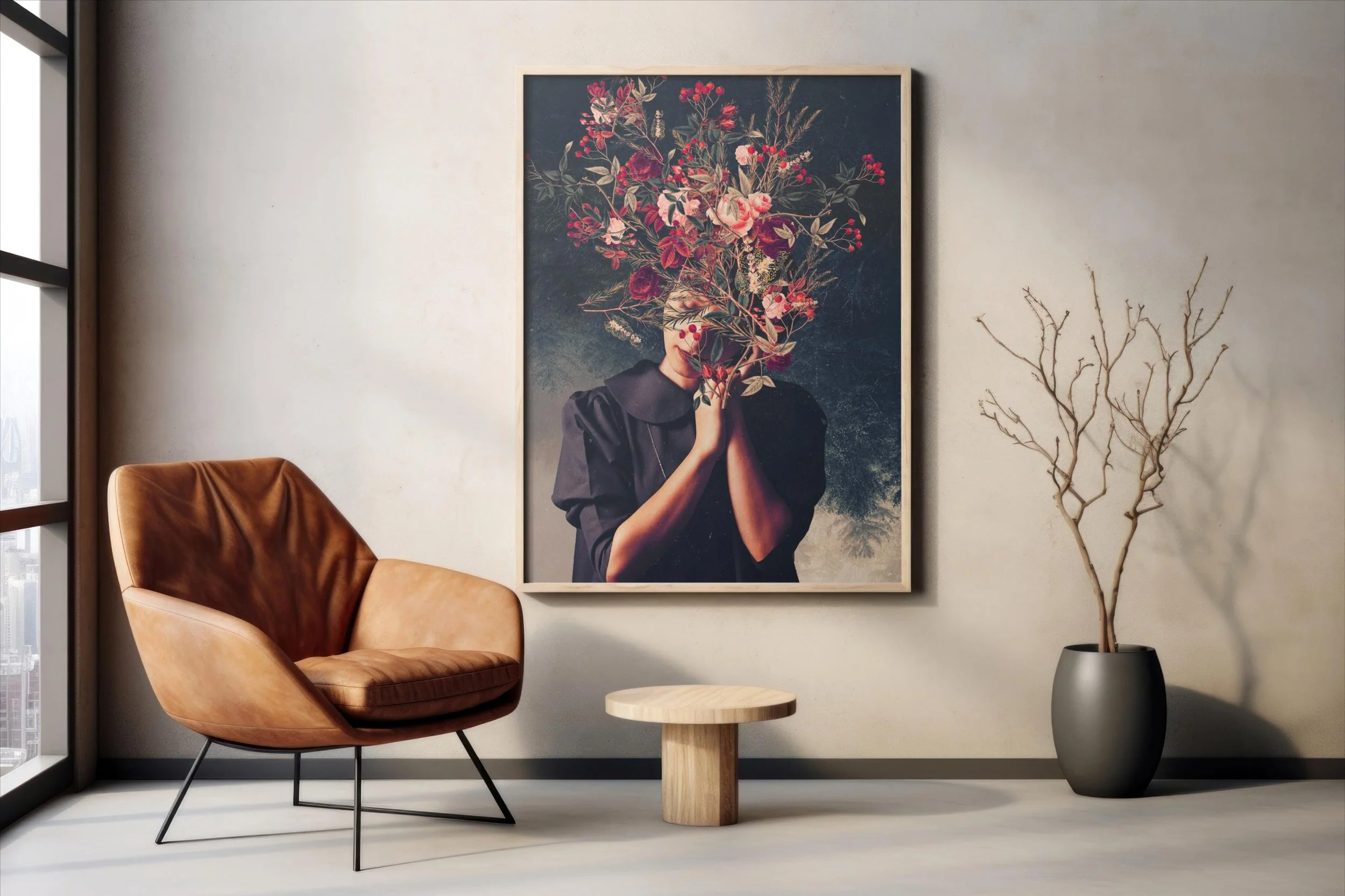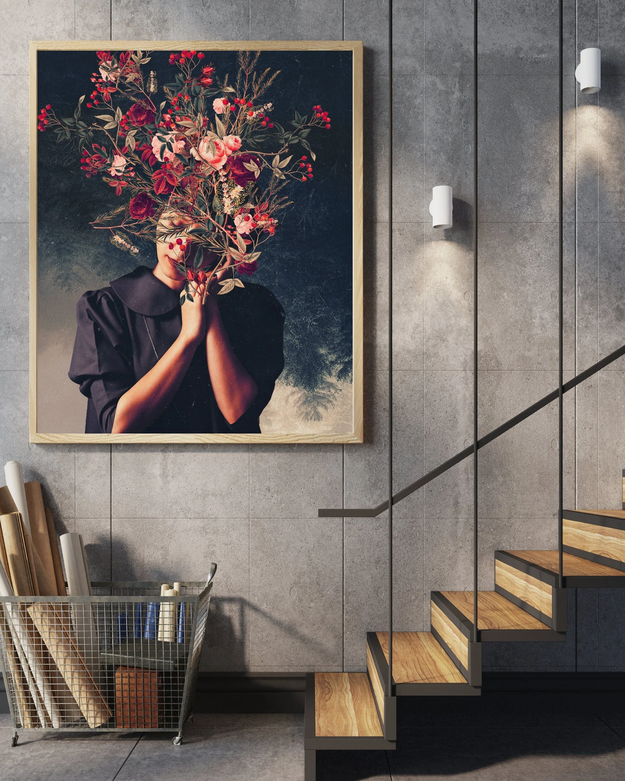 "Kumiko" Floral Surreal Collage Portrait Art Print created by Frank Moth.
