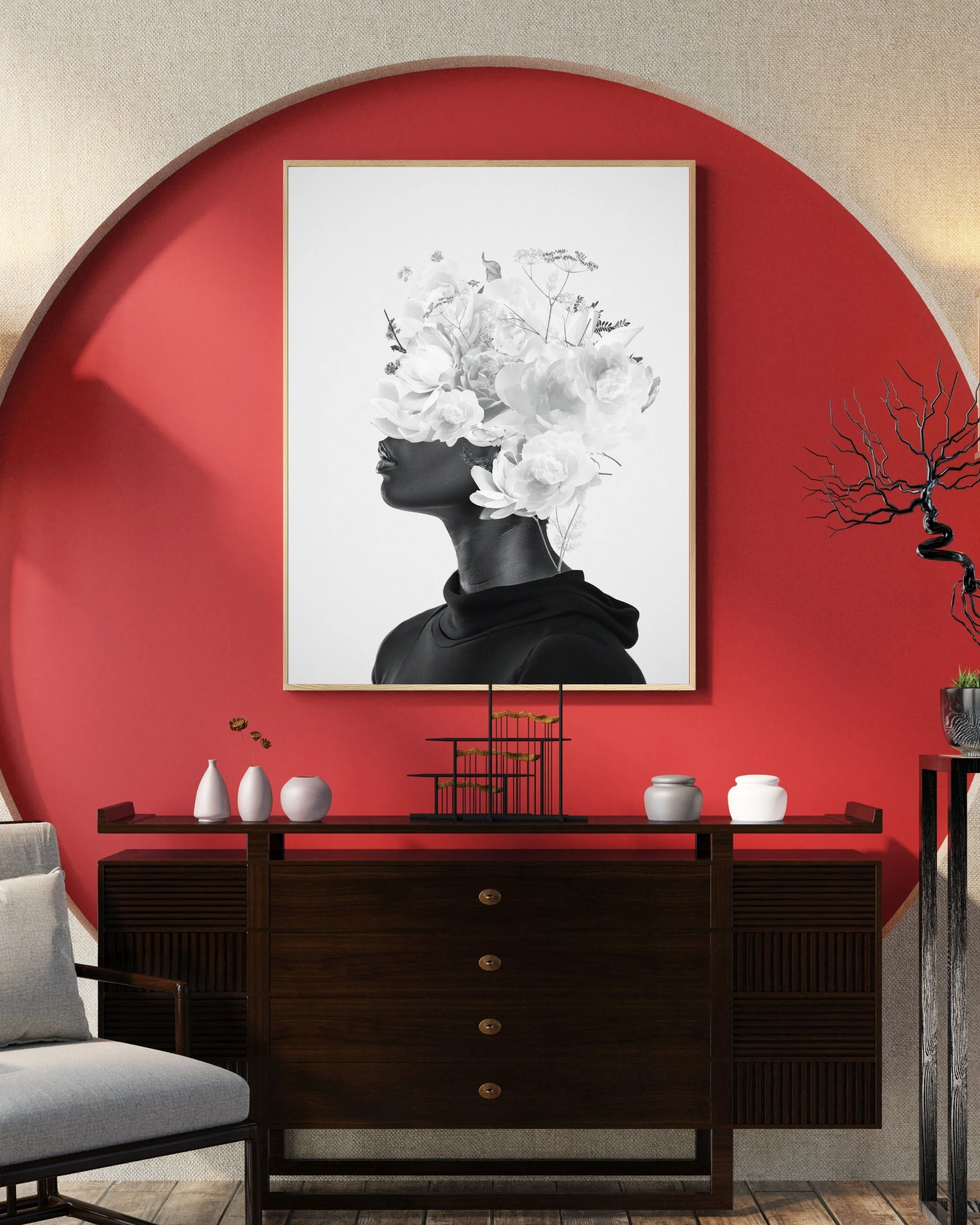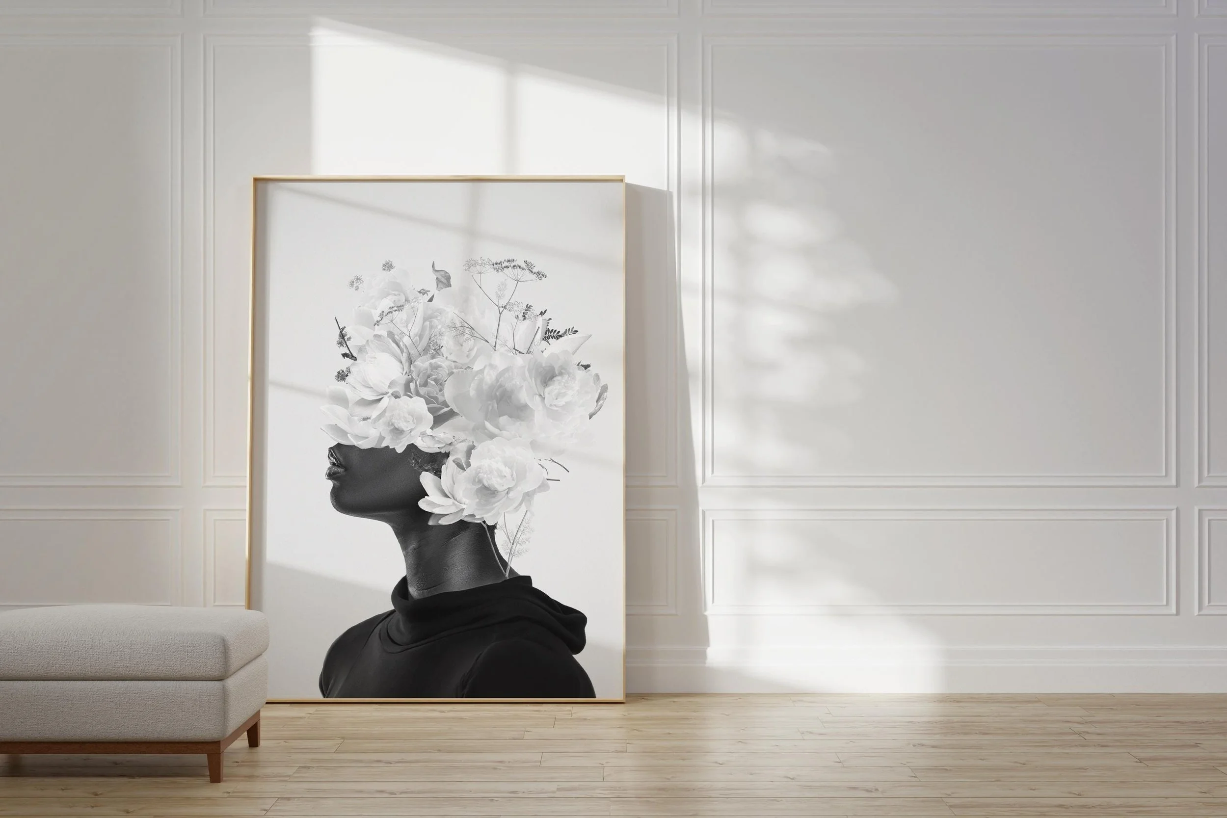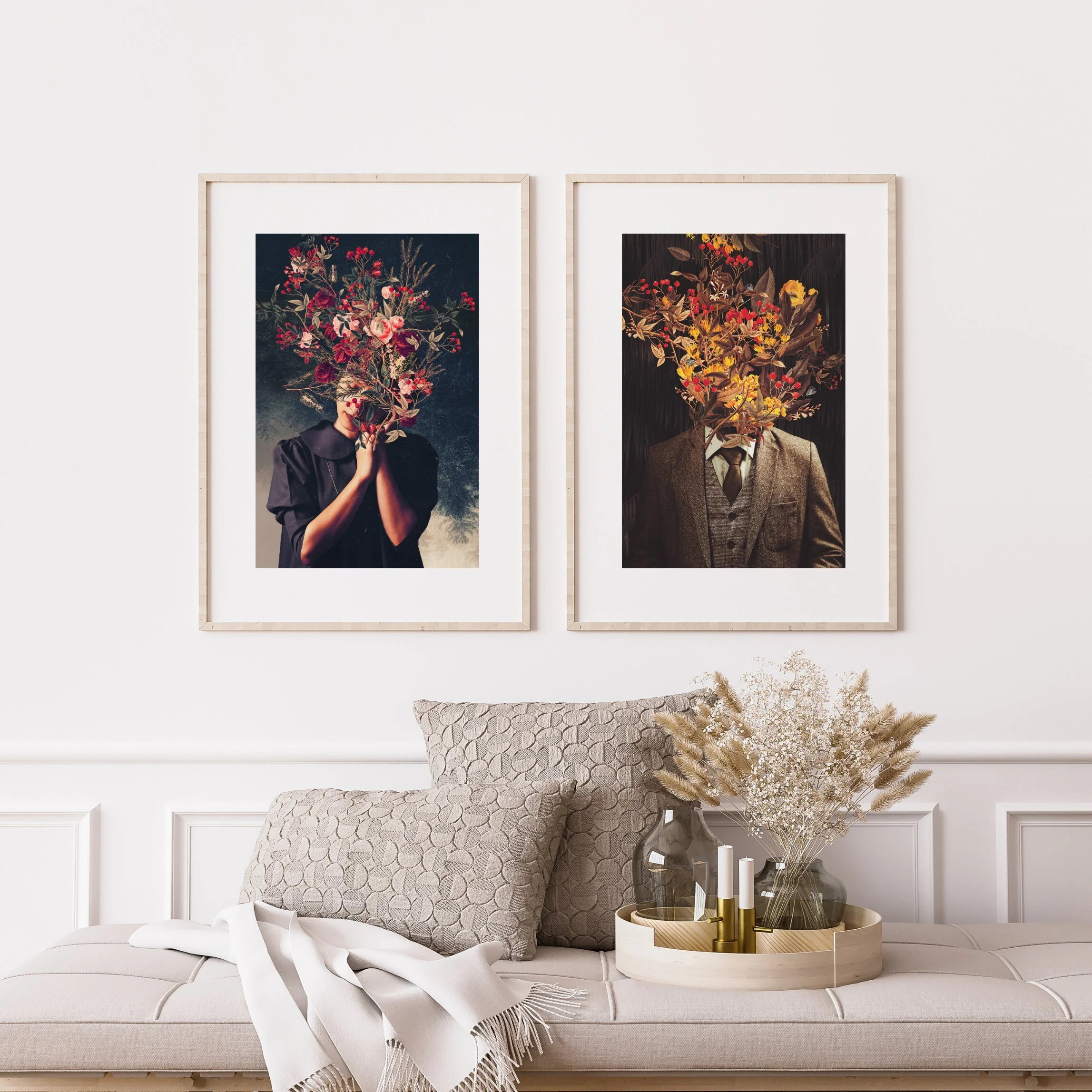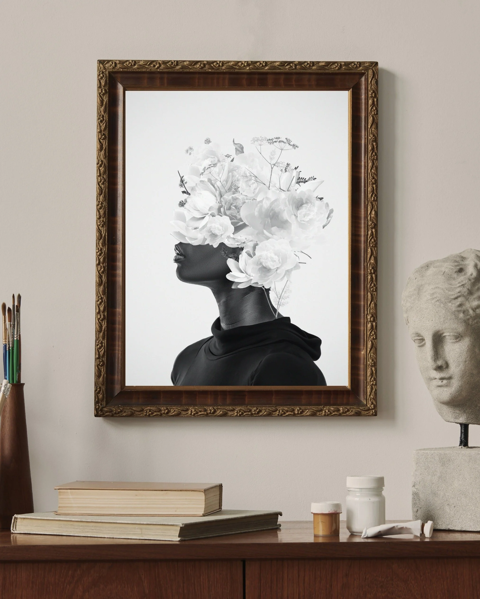 "Kumiko" Floral Surreal Collage Portrait Art Print created by Frank Moth.