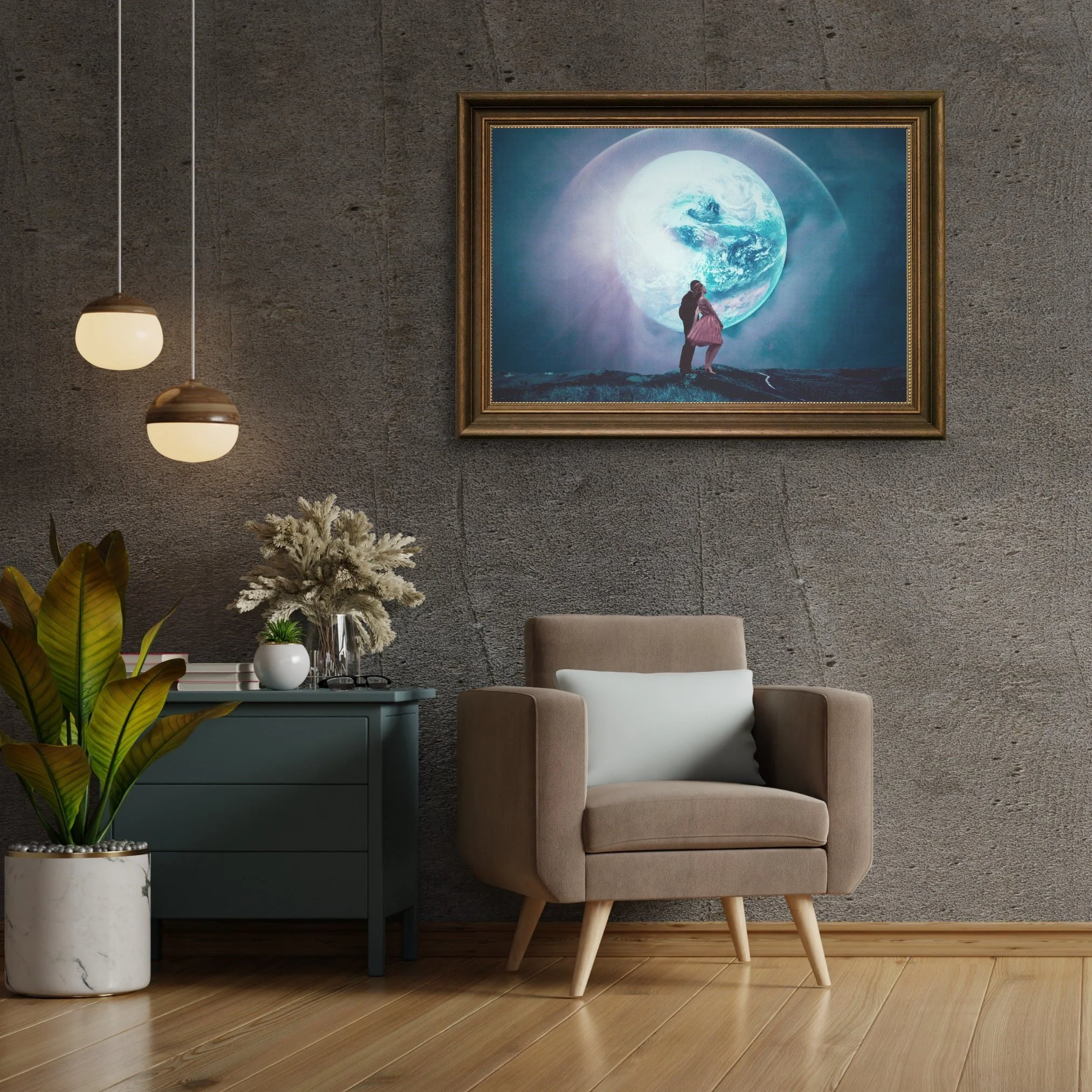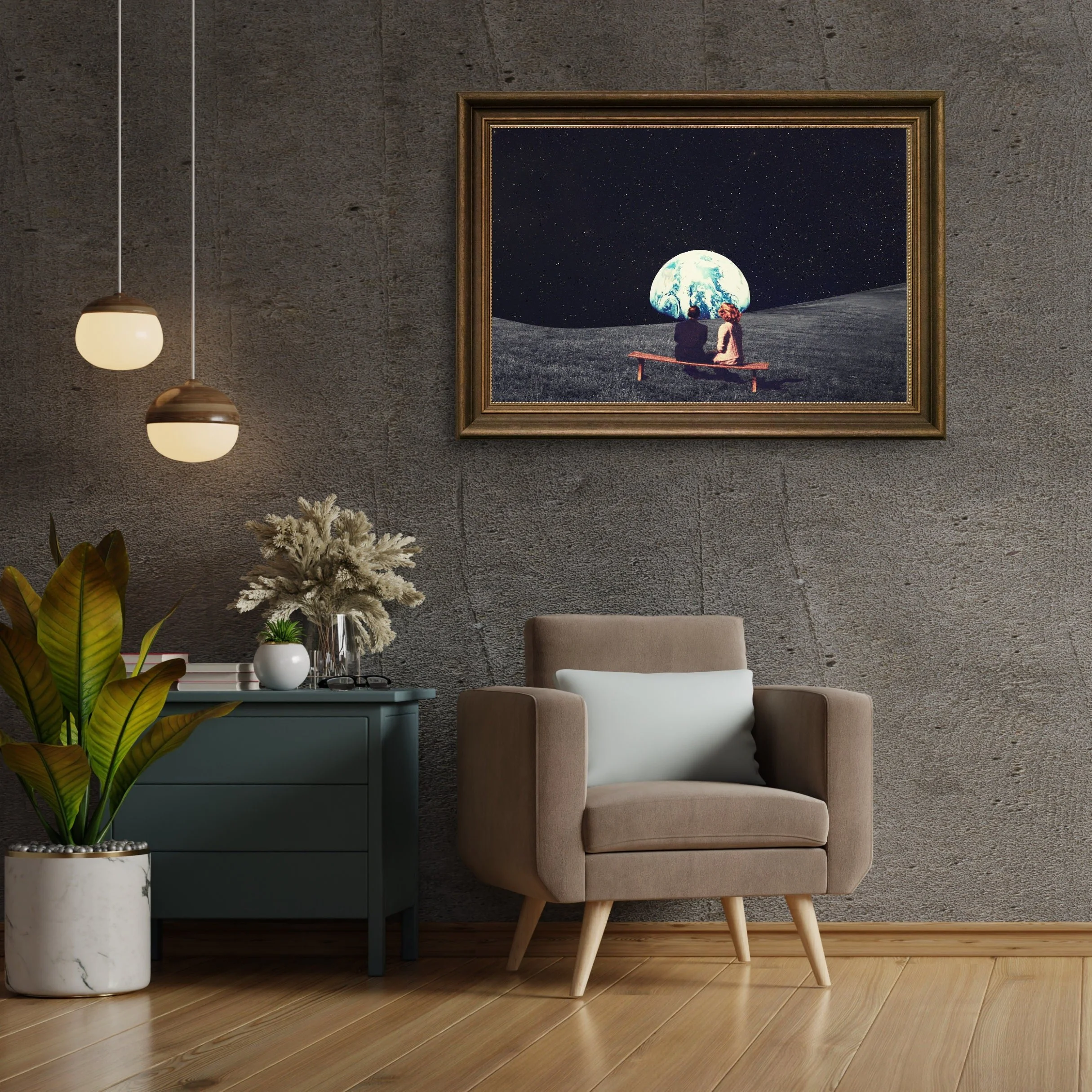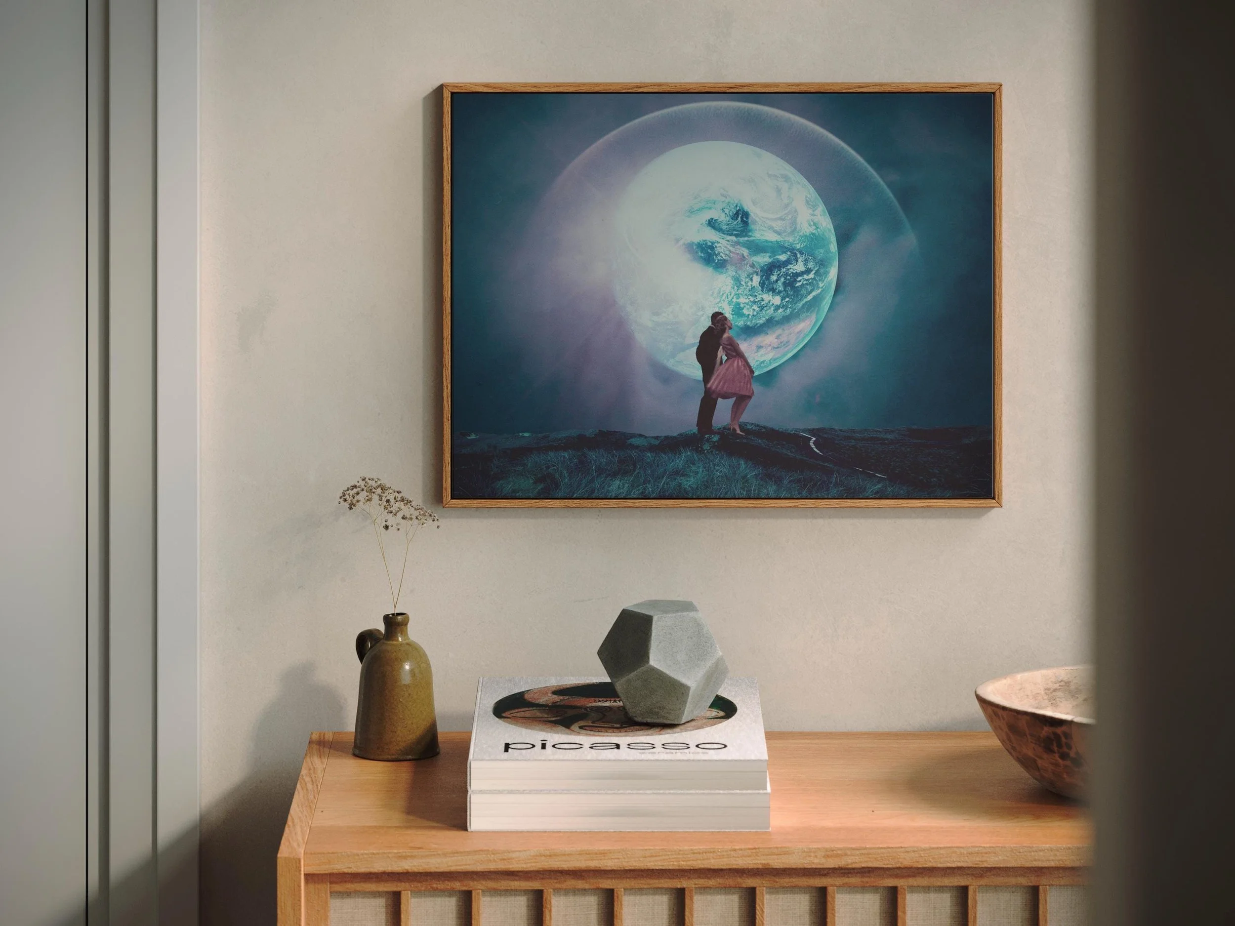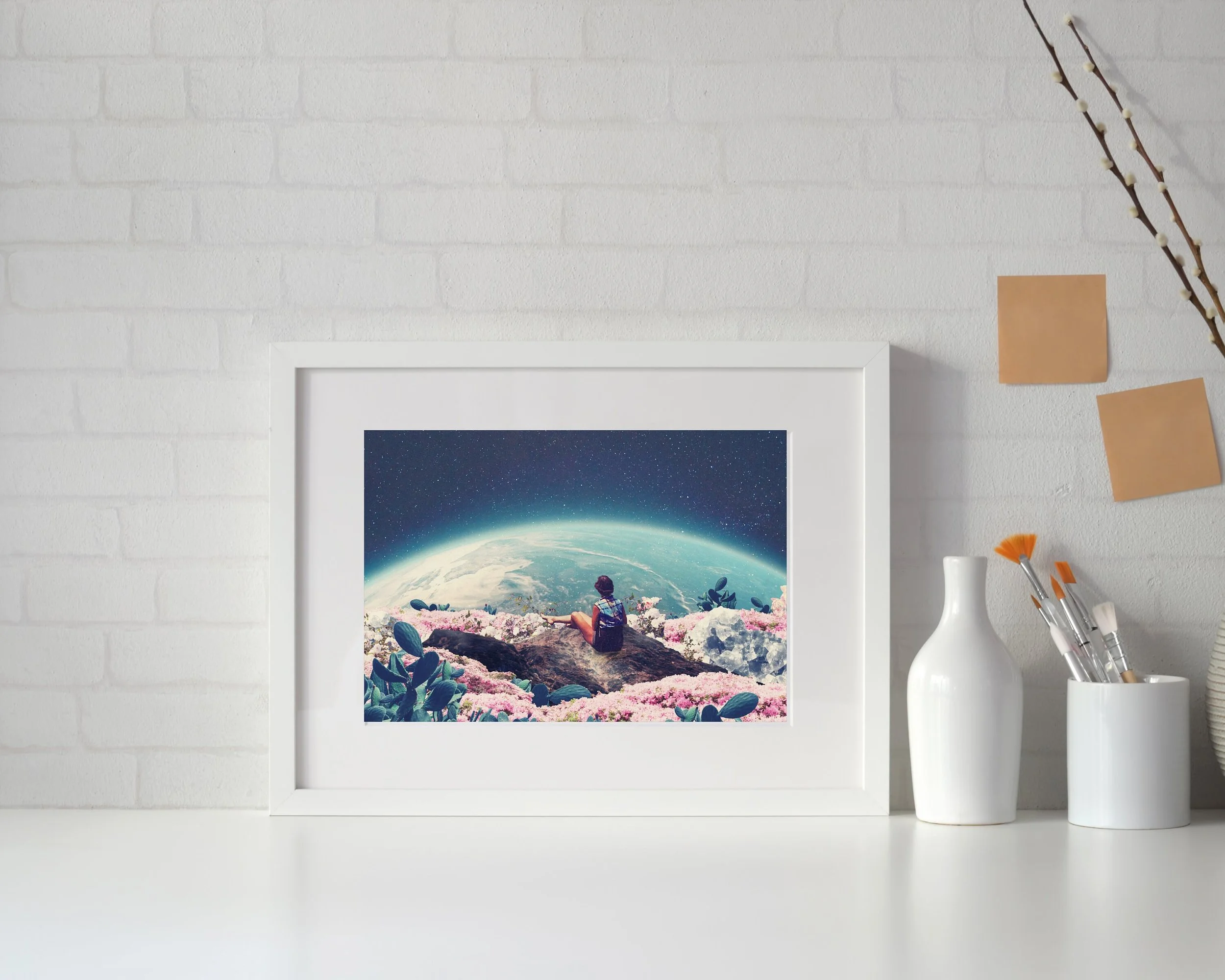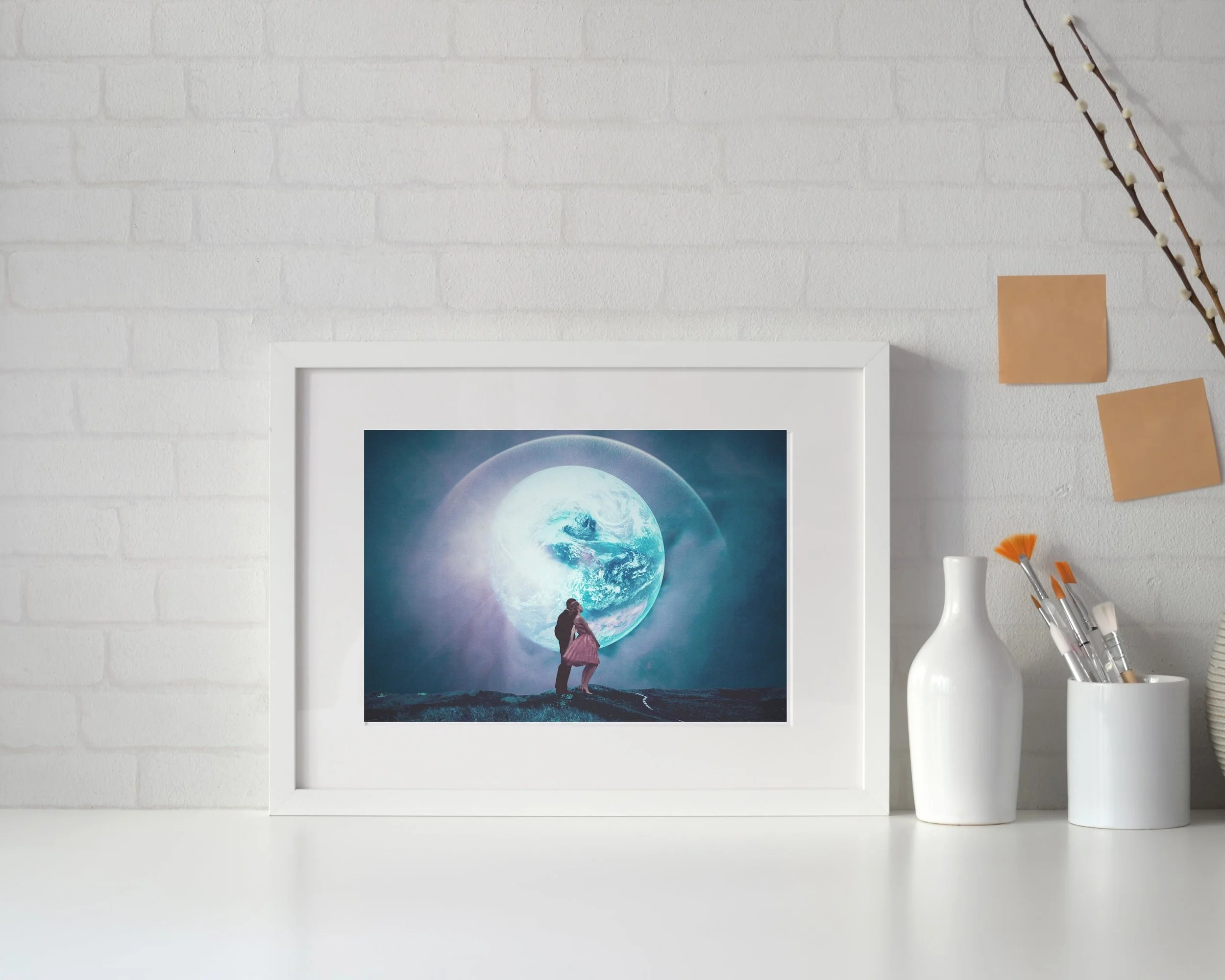 "We used to live there" Surreal Sci-fi Digital Collage Art Print created by Frank Moth.
