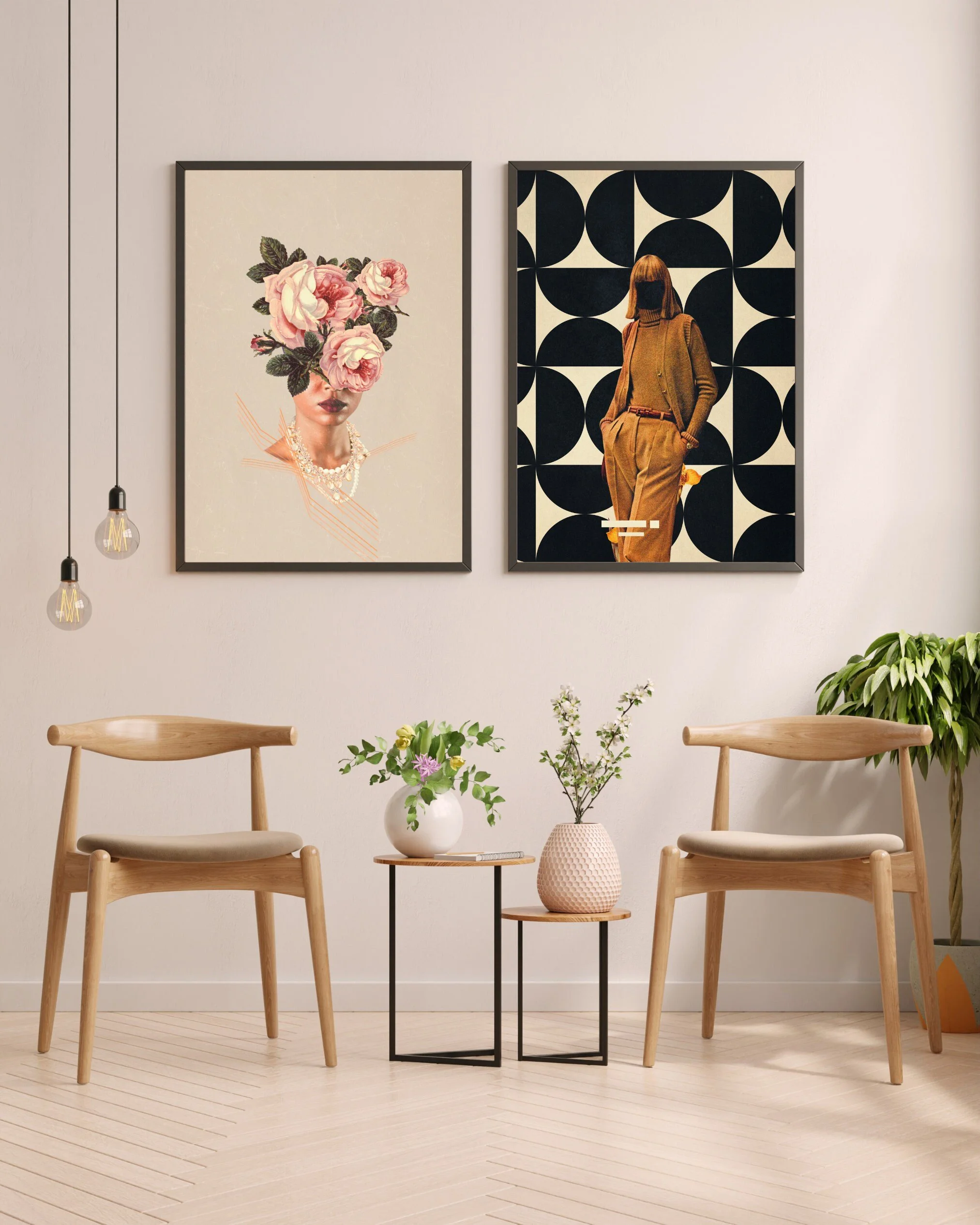 1. Some of the collage artworks are made with old, vintage imagery and they may seem more textured, saturated or blurred. This is all intentional and part of the retro aesthetic we are aiming for.