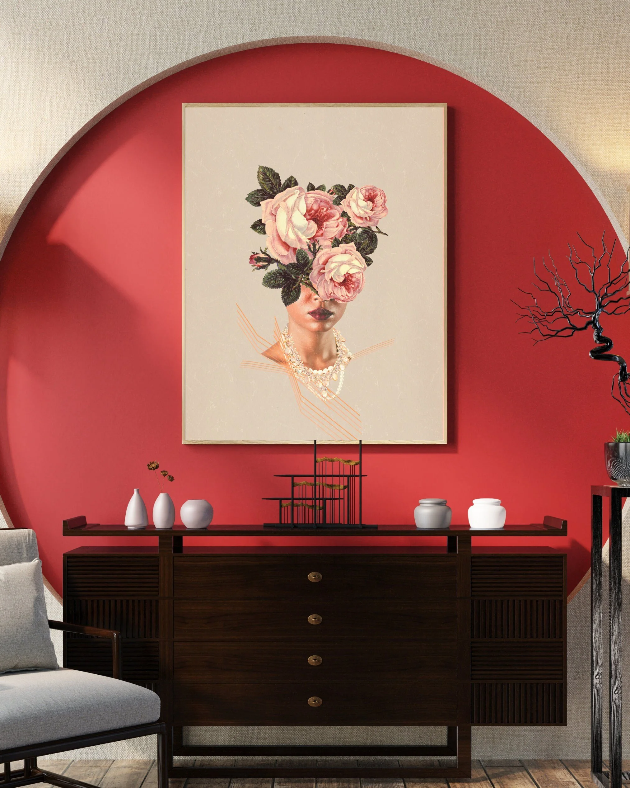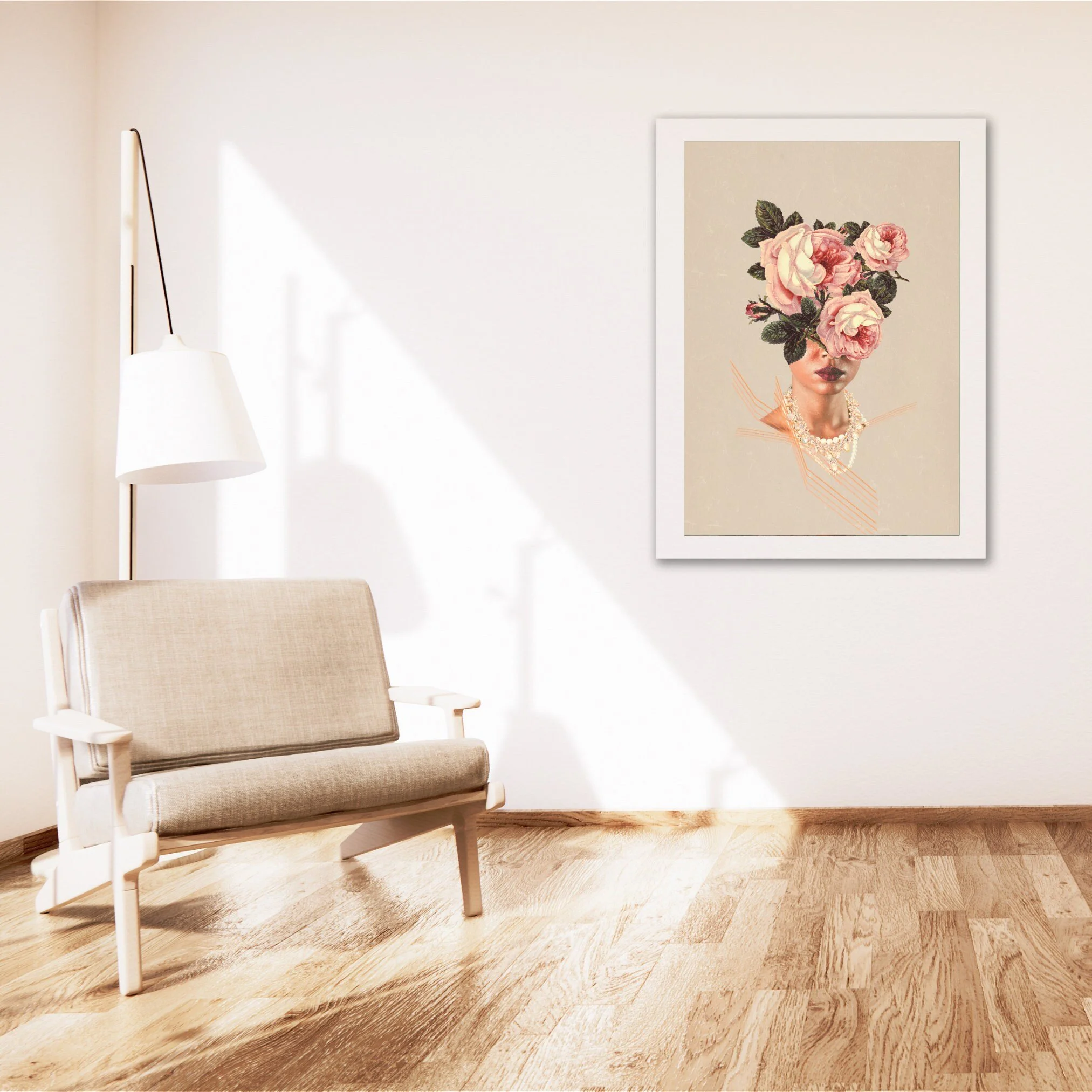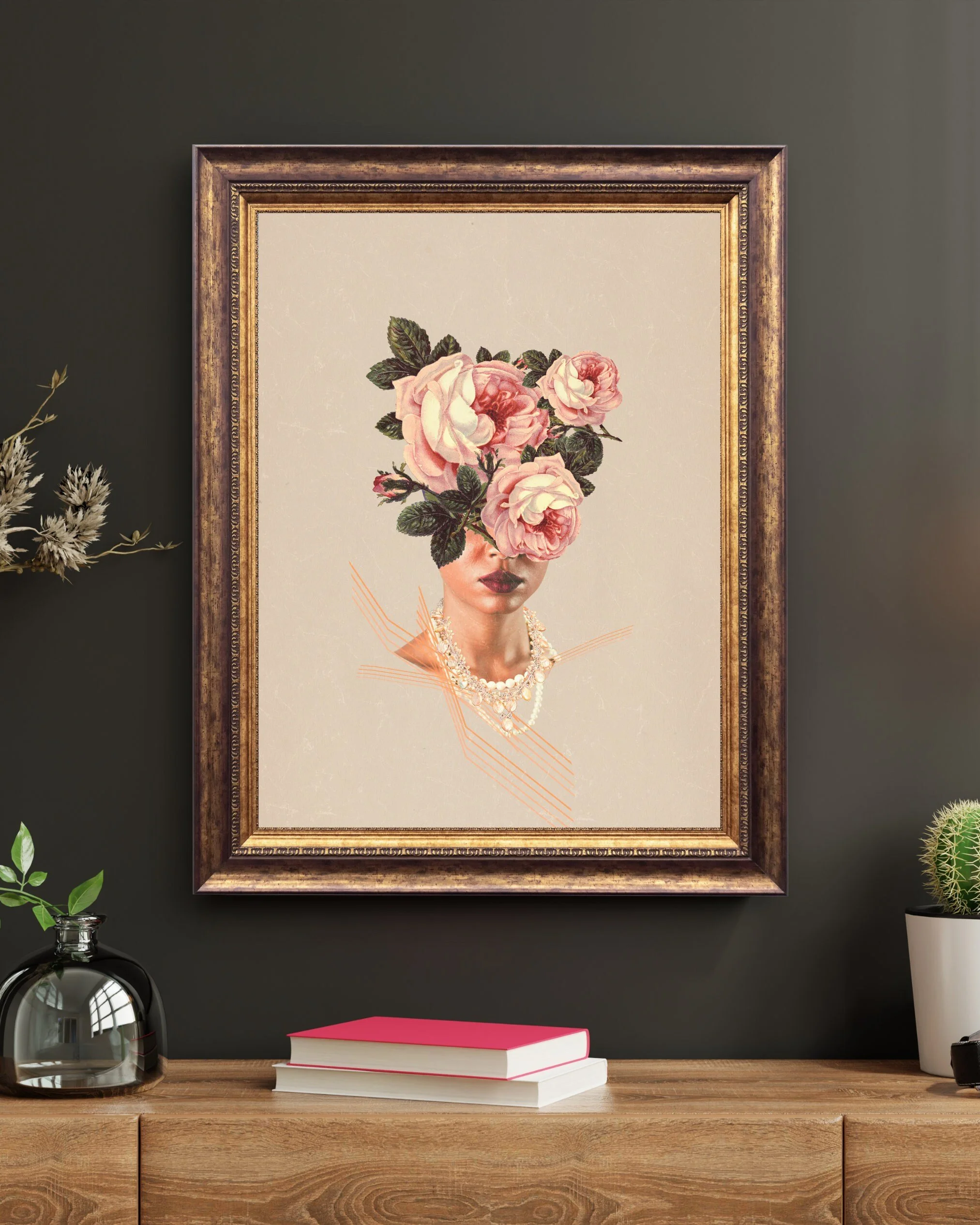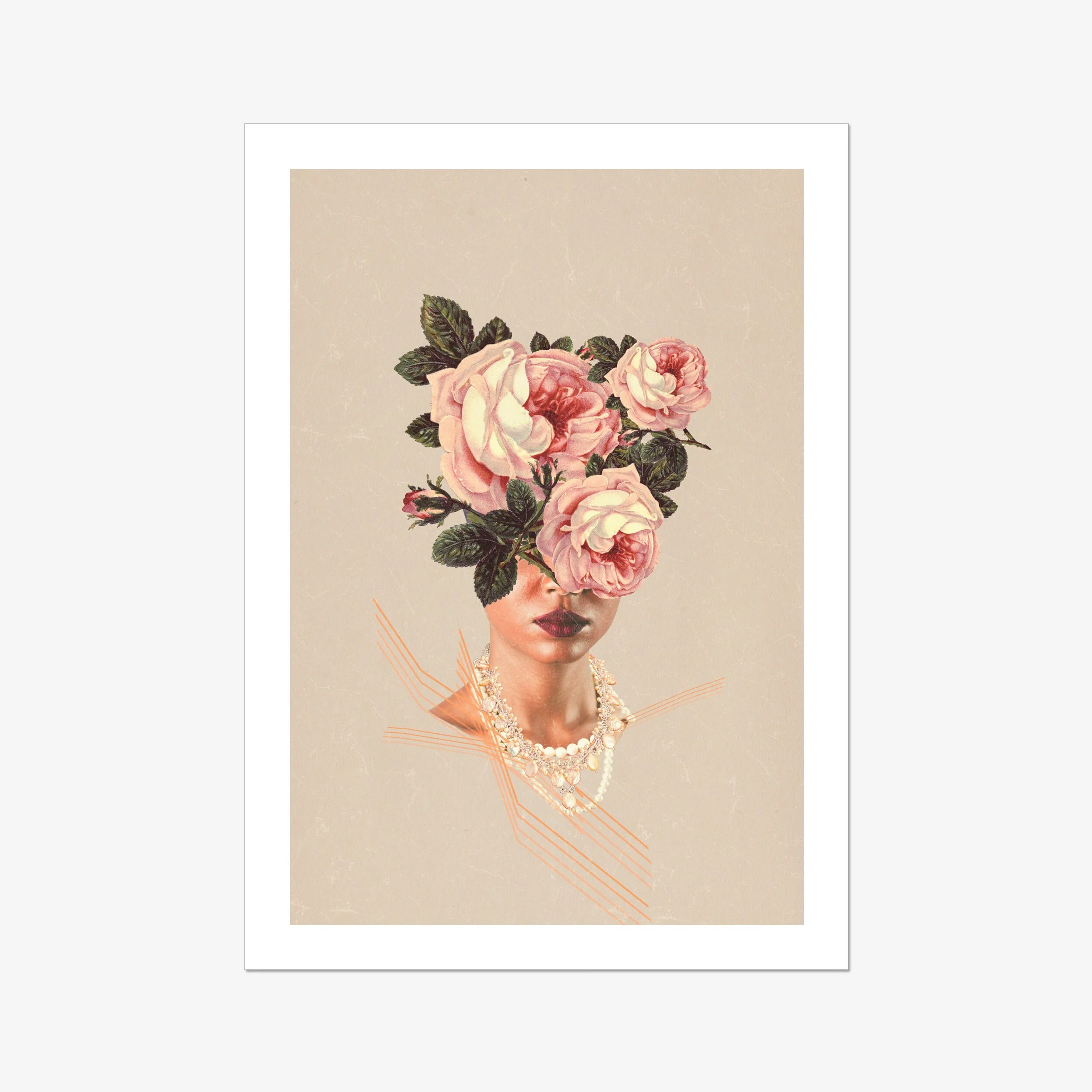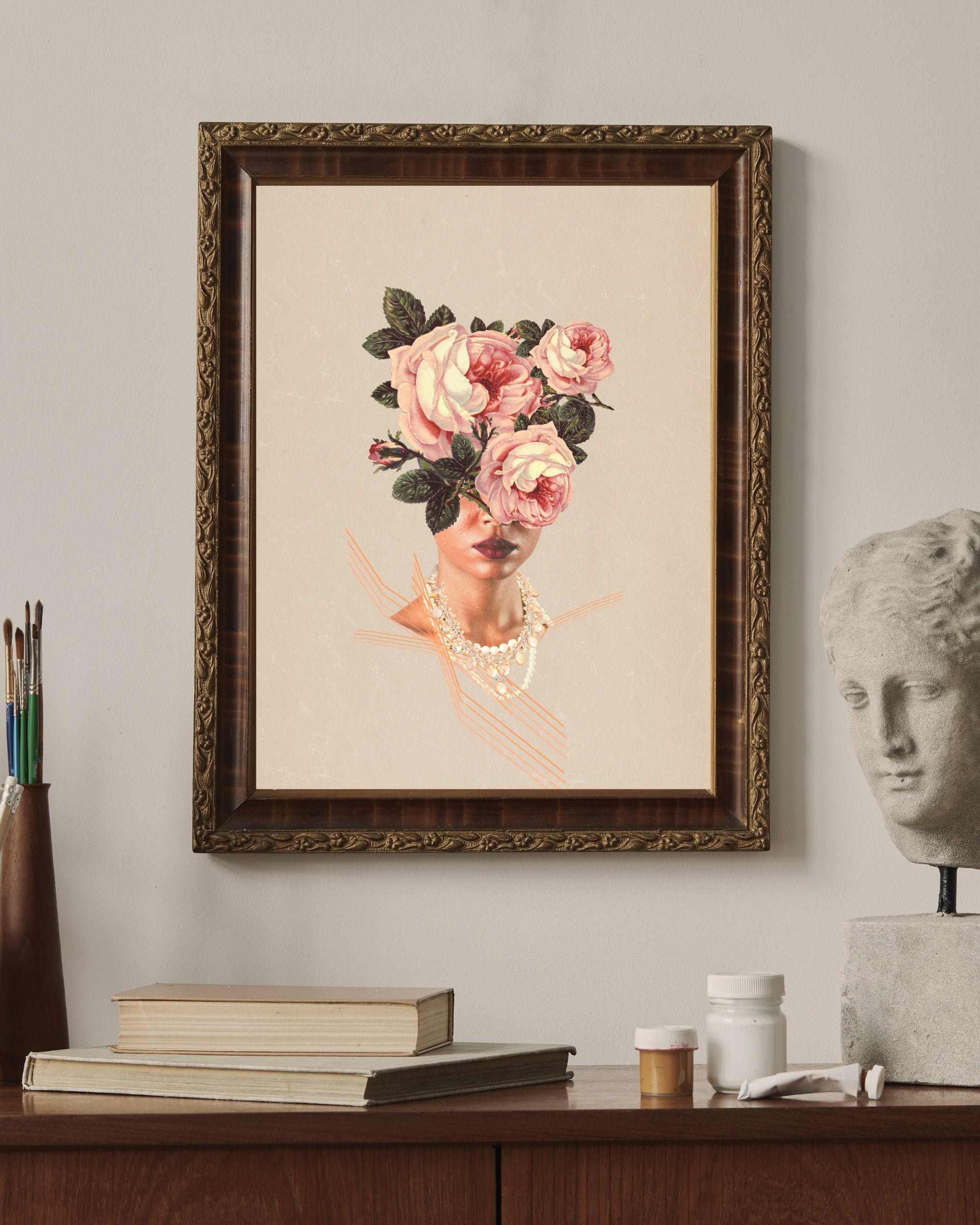 "Wonderpearl" Floral Surreal Collage Portrait Art Print created by Frank Moth.